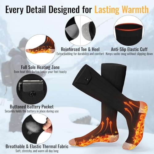 Heated Socks for Men Women, 6000mAh Rechargeable Electric