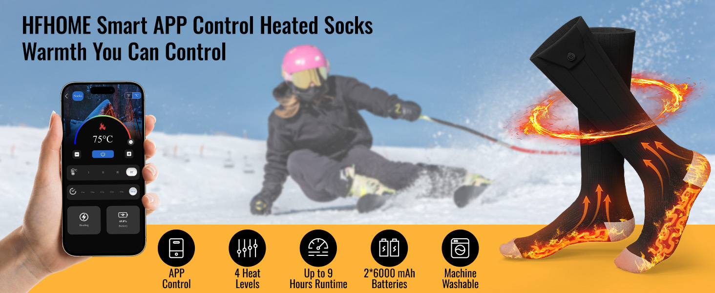 - Perfect for Winter Sports & Everyday Use: Designed for skiing, hiking, fishing, hunting, camping, or outdoor work, HFHOME heated socks are your reliable winter essential. A thoughtful gift choice for men and women who want lasting warmth, comfort, and intelligent temperature control throughout the cold season.