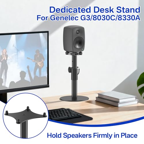 Height Adjustable Desktop Speaker Stand for Genelec G3/8030C/8330A Desk Speaker Stands with Cable Management – Metal Desktop Studio Monitor Stands for Genelec Studio Monitors Up to 30Lbs