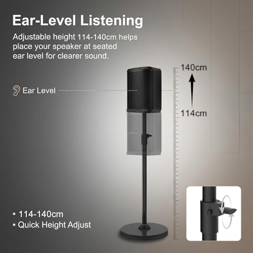 - Height Adjustable 114–140 cm for Better Coverage: Adjust from 114 cm to 140 cm to lift sound above tables and crowds. This floor speaker stand for Bose helps improve clarity and reach for gigs, rehearsals, and presentations.