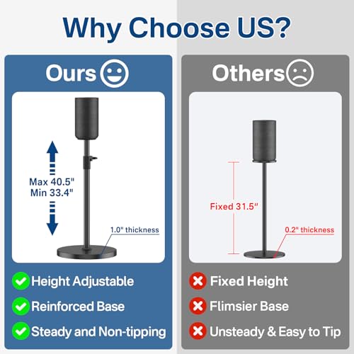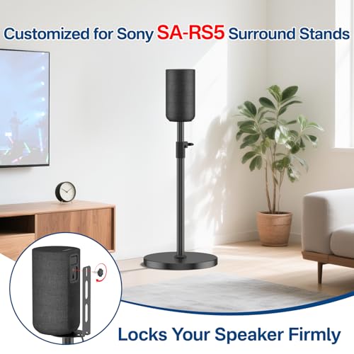 Adjustable Height – The floor speaker stands are Tool-free height adjustment for ideal sound adjust the height from 33.4" to 40.5" effortlessly with the easy-to-use knob—no tools required. Perfectly position for your Sony SA-RS5 surround sound speakers at ear level to reduce reflections and deliver crystal-clear audio.