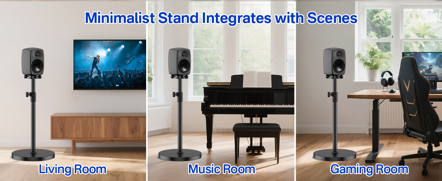 Minimalist Design – Our floor speaker stands come in a minimalist black design that blends well with a variety of home decor, whether it's in your living room, room, game room, or music room. Add a touch of elegance to your home.
