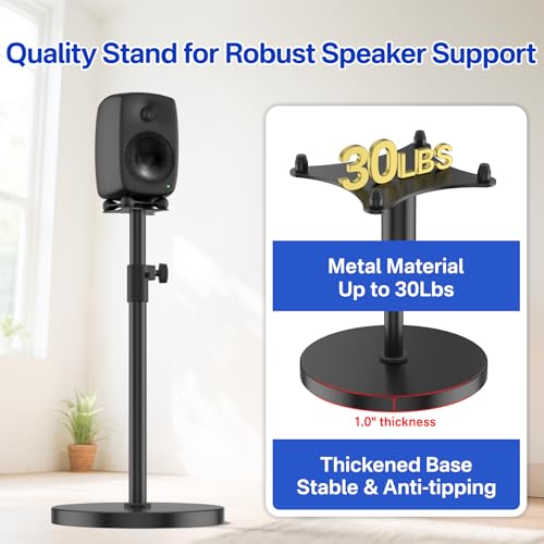 Robust Support – Our stand for speaker are made of quality metal and a thicker base that holds up to 15Lbs. Even with frequent daily use or when the volume is turned up high, the speakers ensure that they are securely placed and won't accidentally slip out of place and cause damage to the speakers.