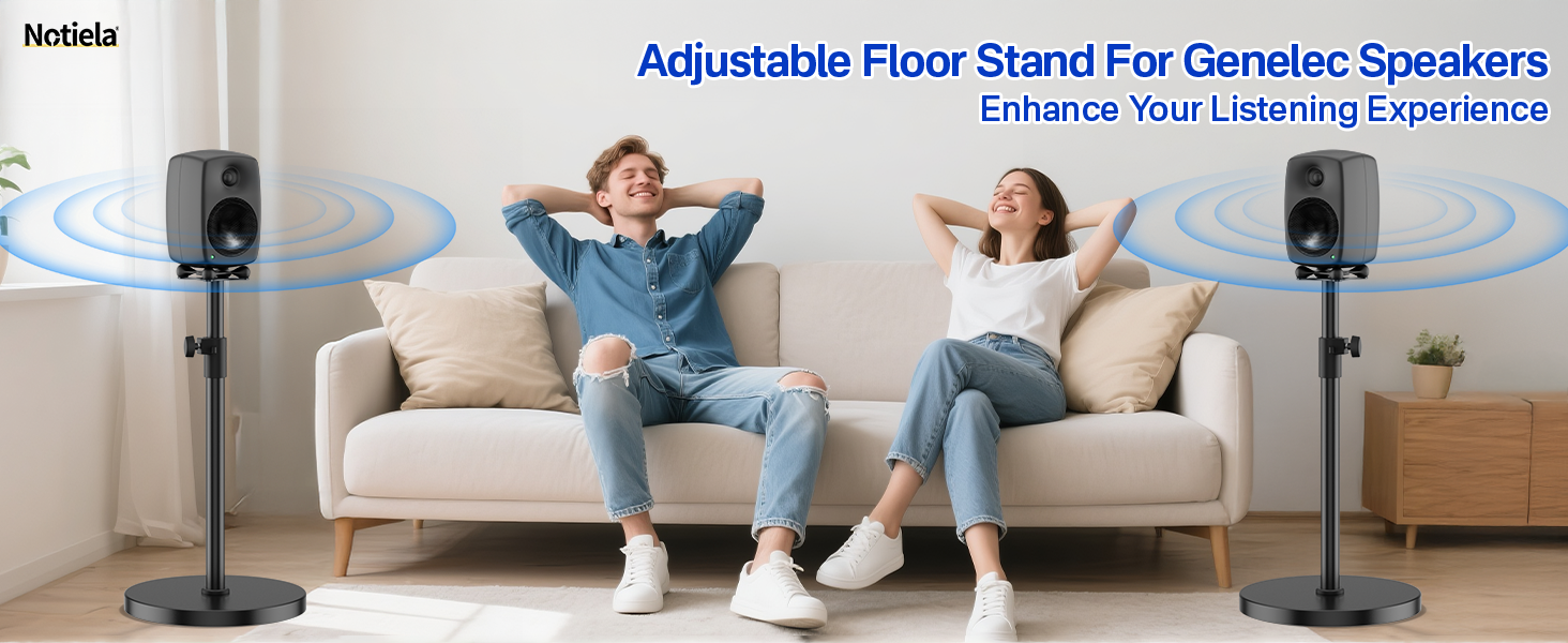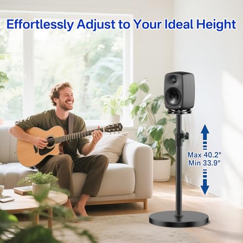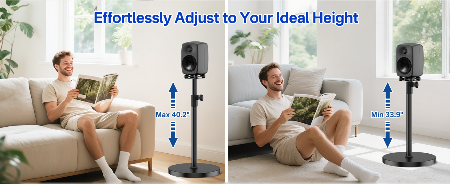 Height Adjustable – Easily matches different audio-visual scenes with an adjustable height range from 33.9" to 40.2". Whether sitting or standing, this speaker floor stands for Genelec speakers places your speaker at the perfect level for immersive, room-filling sound.