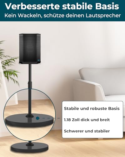 Product Features: –Height adjustable: The height can be adjusted without tools to ensure an optimal listening experience. –Tidy design: The speaker cables can be routed directly through the stand for an elegant look. Keep your home clean and tidy. –Flexible movable: can be placed in the living room, bedroom, kitchen or study. –Suitable for all floor types such as carpet, wood, concrete and tiles. –Easy installation: all the necessary parts and an instruction manual are included, so you can easily do the installation yourself.