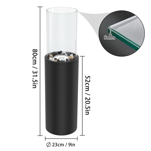 HENGMEI Firepit, Free Standing Fire Place with Safety Glass