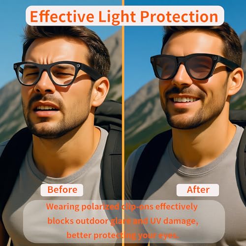 - Clear Vision Protection: These polarized clip for Skyler smart glasses effectively block sunlight, light, and other reflected light, ensuring clear vision while protecting your glasses from harmful light. They are the perfect companion for outdoor travel, hiking, cycling, or daily driving.