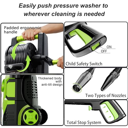 TSS Safety System: Automatically shuts off when not in use to protect car pressure washer and save energy. Built for high durability with automatic overheating protection and efficient cooling for safe operation