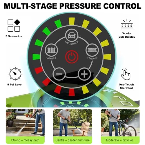 Upgraded Touchscreen Interface: Features 8 pressure levels controlled by a user-friendly touch screen, Pressure adjusted from 280L/H to 500L/H, waterproof touch screen for easy use