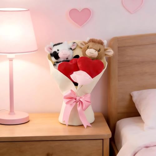 - 【Versatile Decor & Keepsake】Beyond gifting, this bouquet doubles as adorable Valentine’s decor: place it on mantels, desks, or entryway tables to add a playful, love-themed touch. Unlike fresh flowers, it’s a long-lasting keepsake that stays cute for years (no wilting required!), highland cow valentines day plush gift.