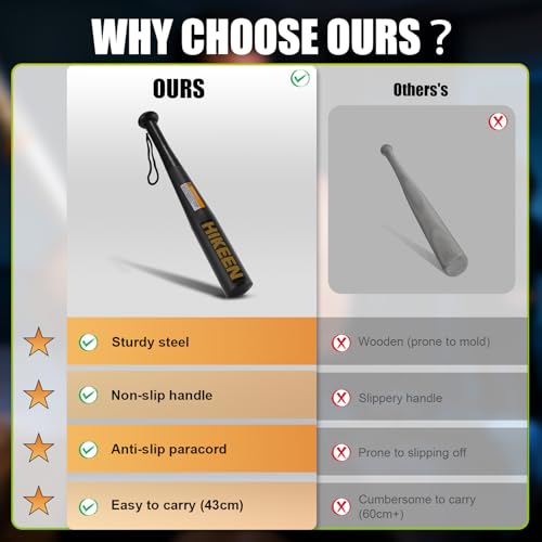 【Compact & Portable 43 cm Design】This baseball bat is short and highly portable—fits easily in your car, sports bag or by your bedside for quick access whenever needed.