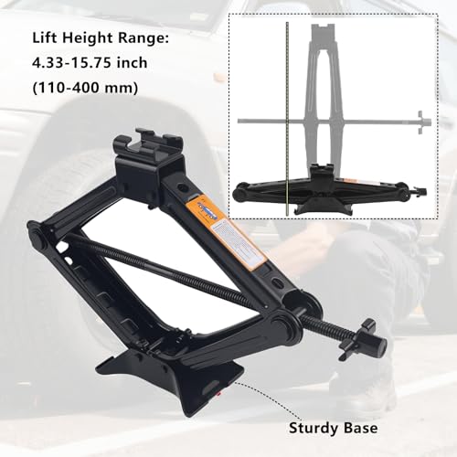 【High Capacity & Vehicle Compatibility】:Boasting a 2-ton (4,409 lbs) capacity and a versatile lifting range of 4.33 to 15.75 inches (11-40 cm), this jack is compatible with a wide range of vehicles. It is the ideal solution for tire changes and routine maintenance on sedans, SUVs, and trucks