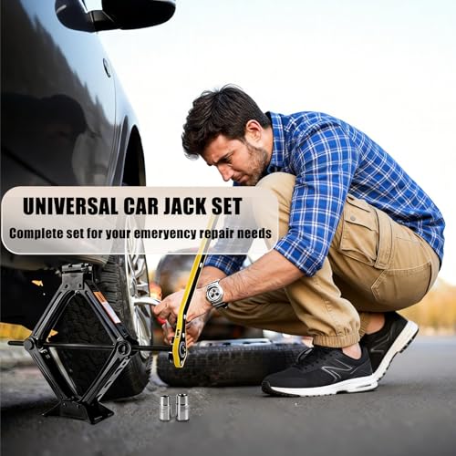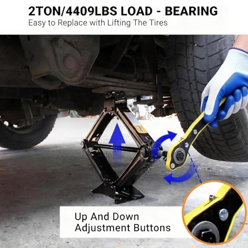 Hniuyun 2 Ton Scissor Jack and Stand Kit, 4409 lb Heavy Duty Car Lift for Sedan, SUV, MPV with Ratchet Wrench & Drill Adapter for Tire Changing