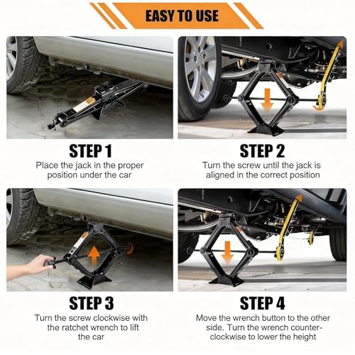 【Durability & Stability】:Crafted from high-strength carbon steel, this scissor jack ensures reliable load-bearing and long-term durability. Its reinforced, enlarged base plate provides exceptional stability during lifting and lowering, significantly enhancing operational safety