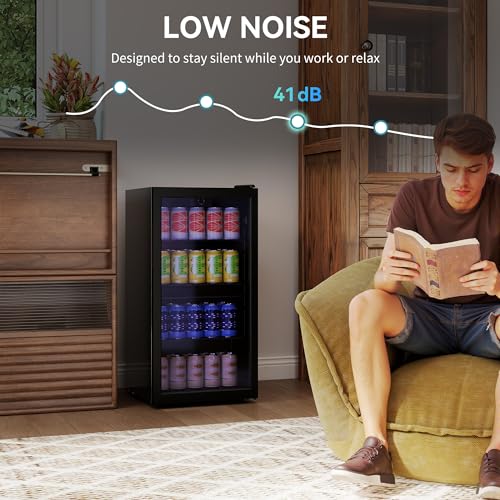 Silent & energy-saving cooling: Keep your drinks perfectly chilled with this beer fridge. Its low-noise compressor runs at just 41 dB, providing efficient, even cooling while using only 81 kWh/year, keeping your space peaceful and comfortable