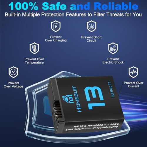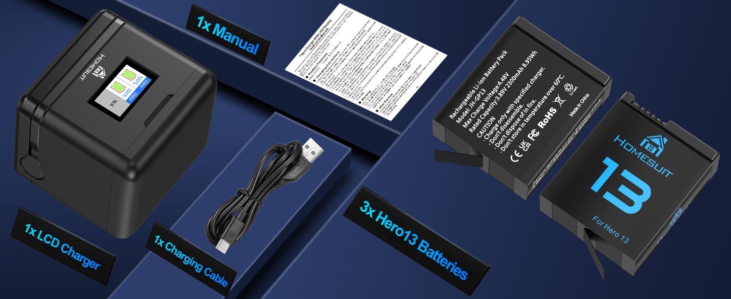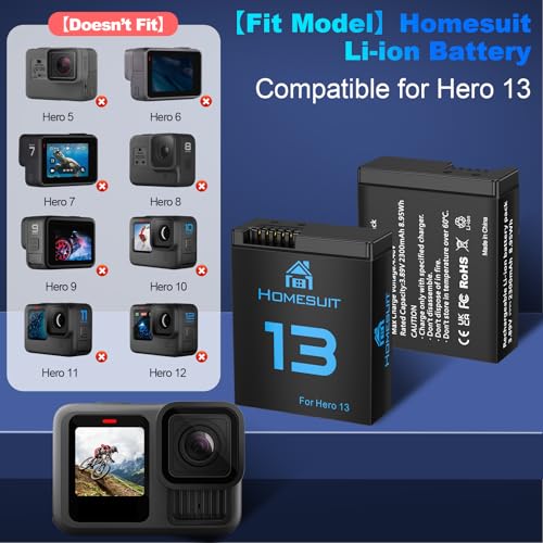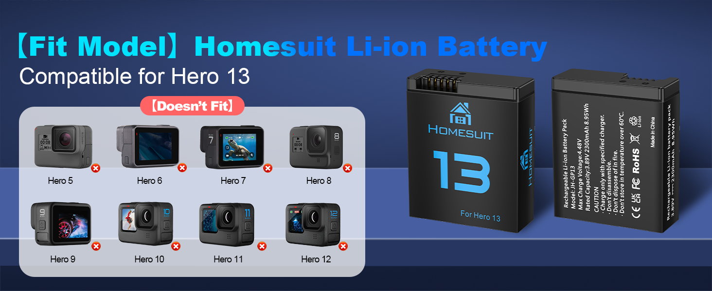 - 【Exactly Same with Original】Homesuit hero 13 battery is designed for Hero series and is fully compatible with the original battery Hero 13 Black, ensuring that your device will not experience any performance degradation or functional limitations when replacing the battery. Homesuit Hero series batteries, record every moment with you.