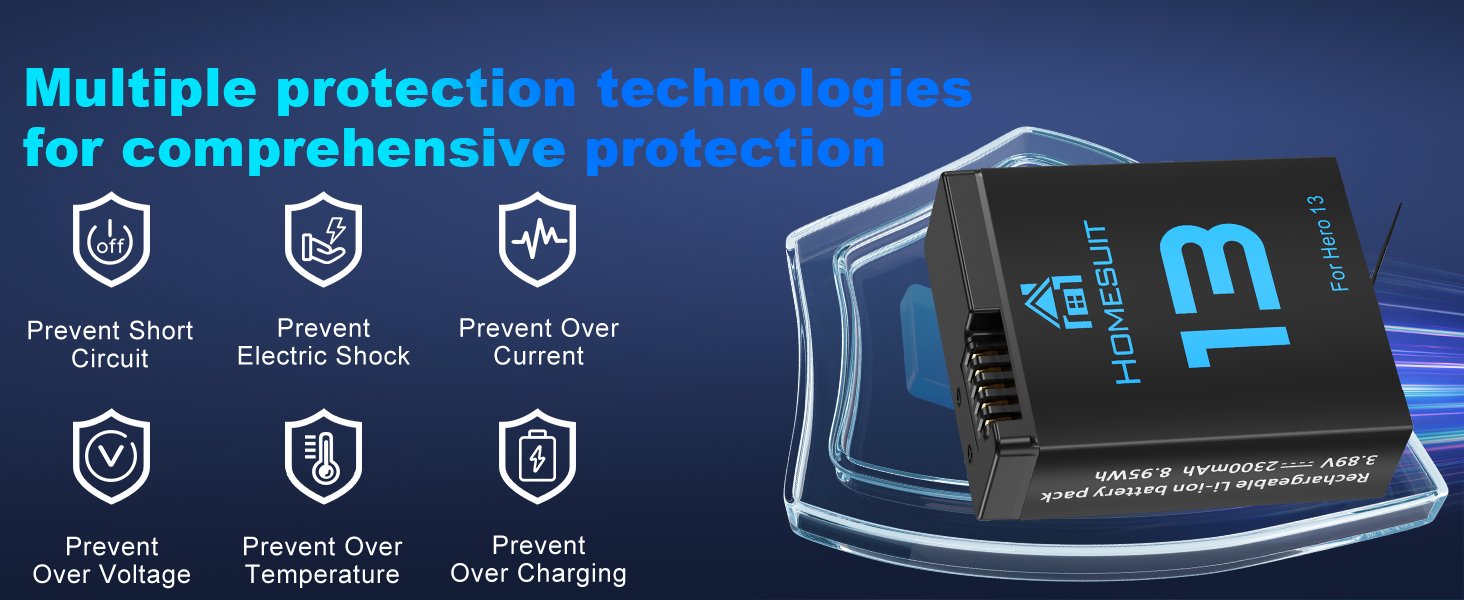 - 【Multiple Protection】Hero 13 replacement batteries have built-in multi-layer protection (prevent overcharging, prevent electric shock, prevent over-current, prevent over-voltage, prevent over-temperature, prevent short circuit), and are of high quality to ensure full protection for you and your device.
