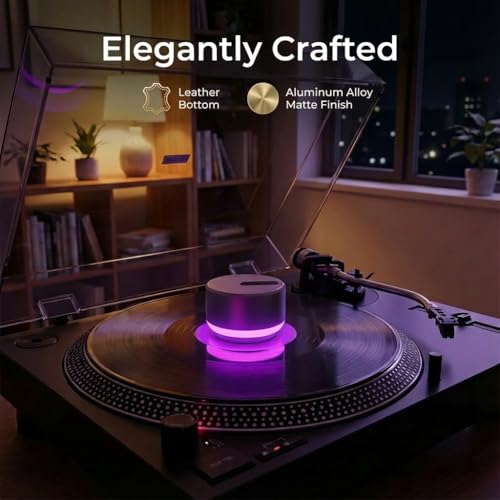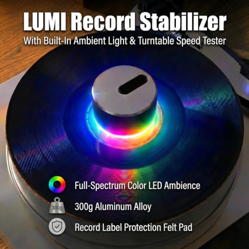 - Ultimate Audiophile Gift: A decorative & professional turntable accessory that solves multiple needs—stabilization, speed testing, and ambiance. LUMI is the perfect gift for vinyl collectors and audiophiles seeking enhanced sound and style. The ambiance light enriches the joy of music.