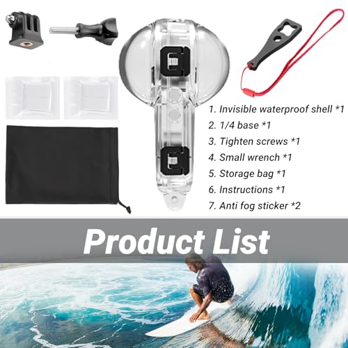 【APPLICABLE】The invisible dive case for Insta360 X4 Air, Completely invisible design that allows full 360° underwater shots, Ideal for diving, surfing, snorkeling and other water sports activities. When diving you have to use two of the fog protectors on each side.