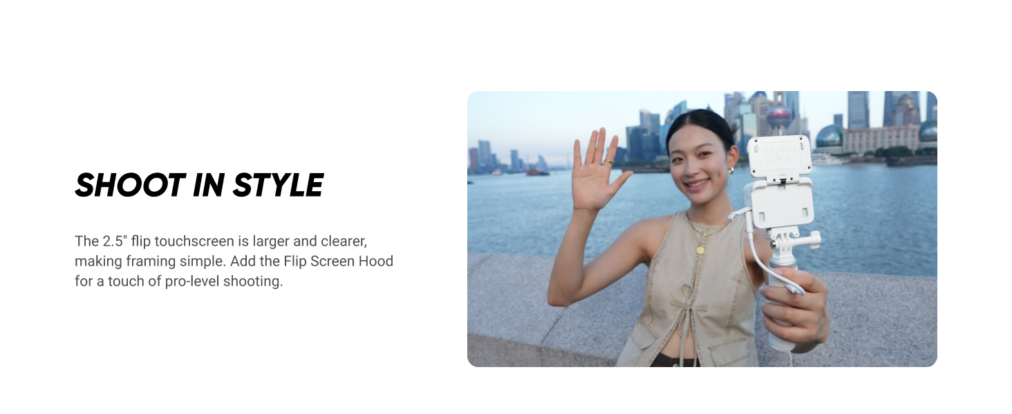 - 2.5" FLIP TOUCHSCREEN: Have more control with the 2.5" flip touchscreen that can handle the action. With a 70% increase in pixel density, 6% increase in brightness and 100% increase in flip durability, it makes it easier to preview and perfect your shots and remains visible even in bright sunlight.