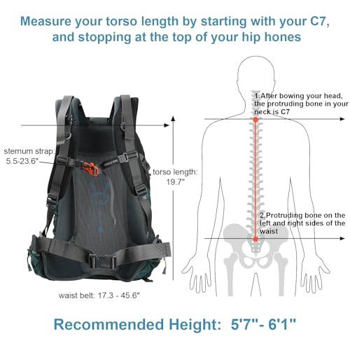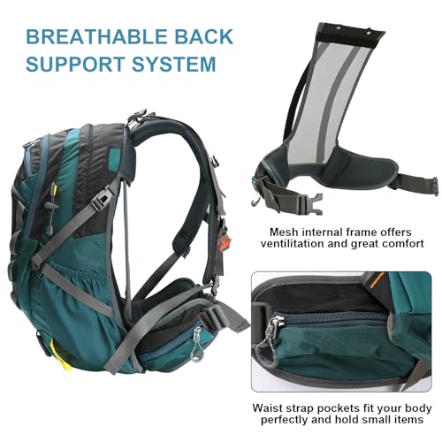 Internal Frame Hiking Backpack with Back Support, Breathable Trekking Rucksack with Rain Cover, Daypack for Camping mountaineering Travel