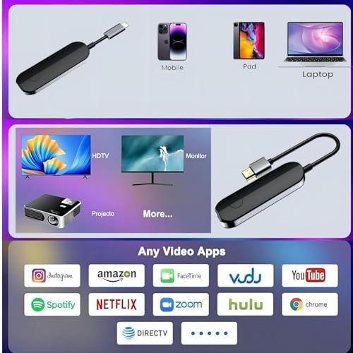 - 【Wireless HDMI Transmitter Compatibility】Wireless HDMI Transmitter works with almost all HDMI output devices, laptops, tablets and more. Smartphones are also supported with a dedicated HDMI converter. The Wireless HDMI Transmitter also supports Neflix, Prime Video, Sky Go, BT Sport, Tiktok, Youtube, DIRECTV, HULU, Comcast TV, XFINITY, Vudu, Movistar and other applications.