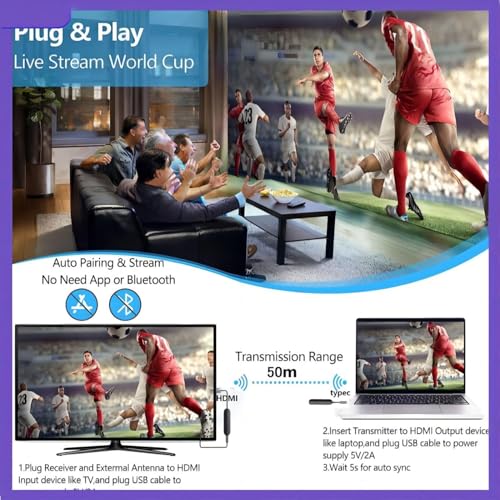 - 【1080P Full HD with No Lag】The wireless HDMI extender supports 1080P Full HD picture quality which meets your daily basic needs. In addition, the wireless HDMI transmitter and receiver provide lag-free, high-quality audio transmission, ensuring perfect synchronisation between audio and video. Bringing you a high-definition, lag-free visual experience for wireless screen casting.