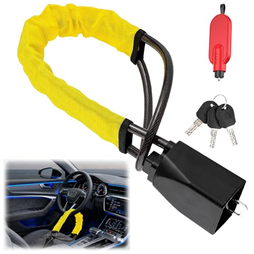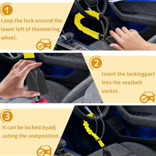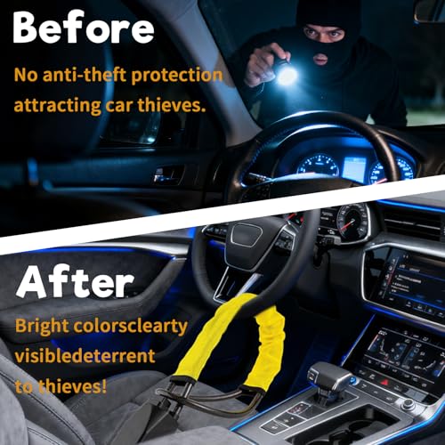 - 【Highly Visible Deterrent】The bright yellow and black design acts as a strong visual deterrent against potential thieves. Its prominent presence on your steering wheel signals that your car is secured with a high-end anti-theft device, discouraging break-in attempts.