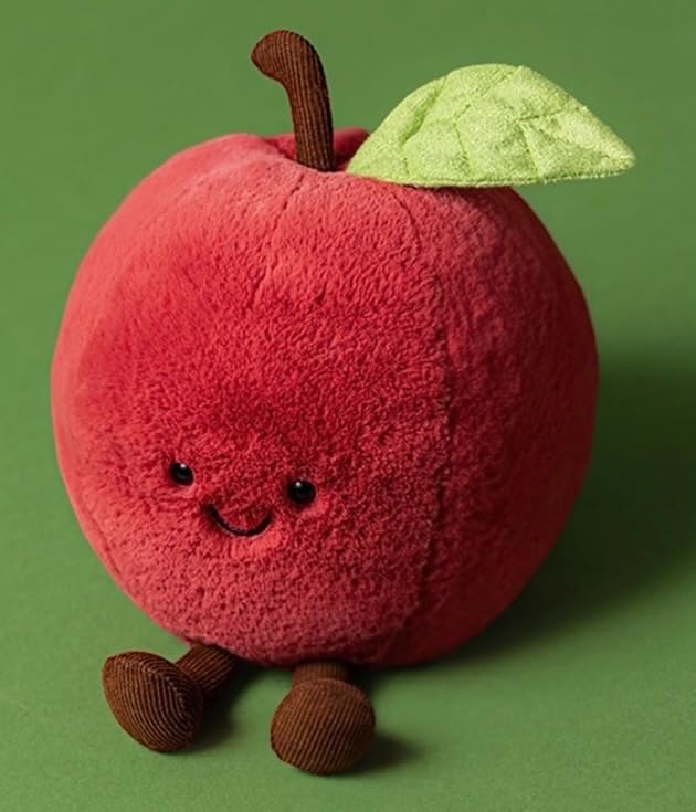 Amuseables Apple is currently exploring Canada, having recently crossed off white-water rafting from her bucket list. Her iconic leaf hat, inspired by the French quarter of Toronto, remains damp. She’s eager for new experiences, especially those with a great view. Next stop? New York, with its famed skyline, subway, and the legendary cheesecake at the Jellycat Diner. Apple dreams big and has already reserved a table for two at the diner care to share a slice of cheesecake?