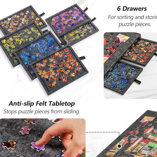 - 【Integrated Sorting Drawer System】The board includes 6 drawers for sorting and storing puzzle pieces by colour or type. This organiser system helps keep your workspace tidy and pieces easily accessible.