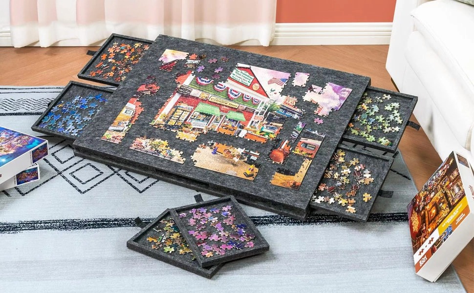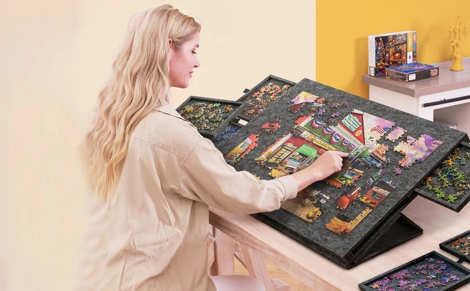 Jigsaw Puzzle Board with 6 Drawers, Tilting Felt Puzzle