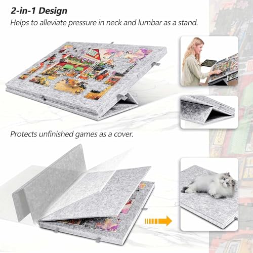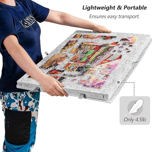 1000 PCS Tilting Felt Puzzle Board: Usable area measures 30 × 21 inch, and its lightweight makes it easy to take around. You can place it anywhere you like, such as bedroom, living room, or window sill, to start your puzzle fun