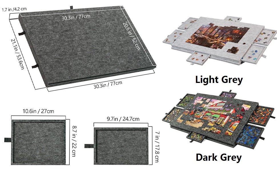 Super Lightweight Puzzle Board: Puzzle boards is processed out of premium felt fabric, thus is not easy to bend. The surface of puzzle board gives an excellent texture of suede, ensuring enough friction to stop the puzzle pieces from sliding around, even if the board is tilted to a certain angle. Raised edges also effectively prevent puzzle pieces from slipping and missing