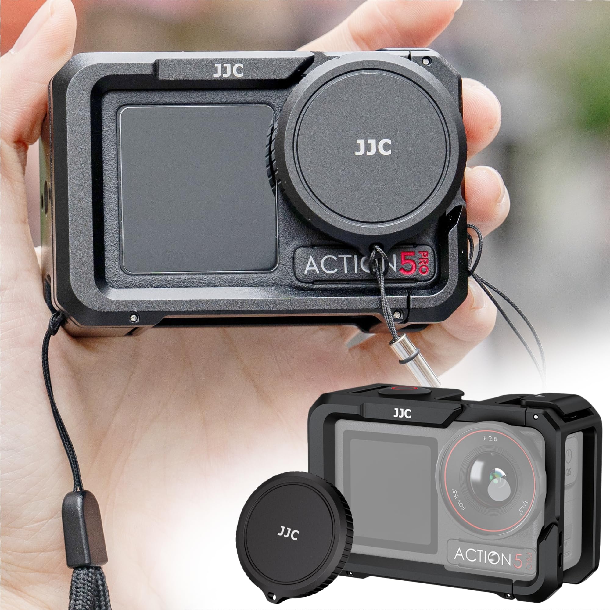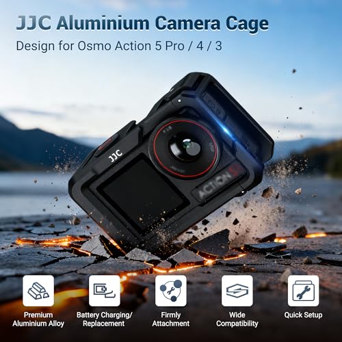 JJC Osmo Action 5 Pro 4 3 Metal Cage Set,Aluminium Protective Frame for DJI Osmo Action 5 Pro/4/3 with Lens Cap & Strap,Camera Cage with Cold Shoe Quick Release for Action5 Action4 Action3 Accessories