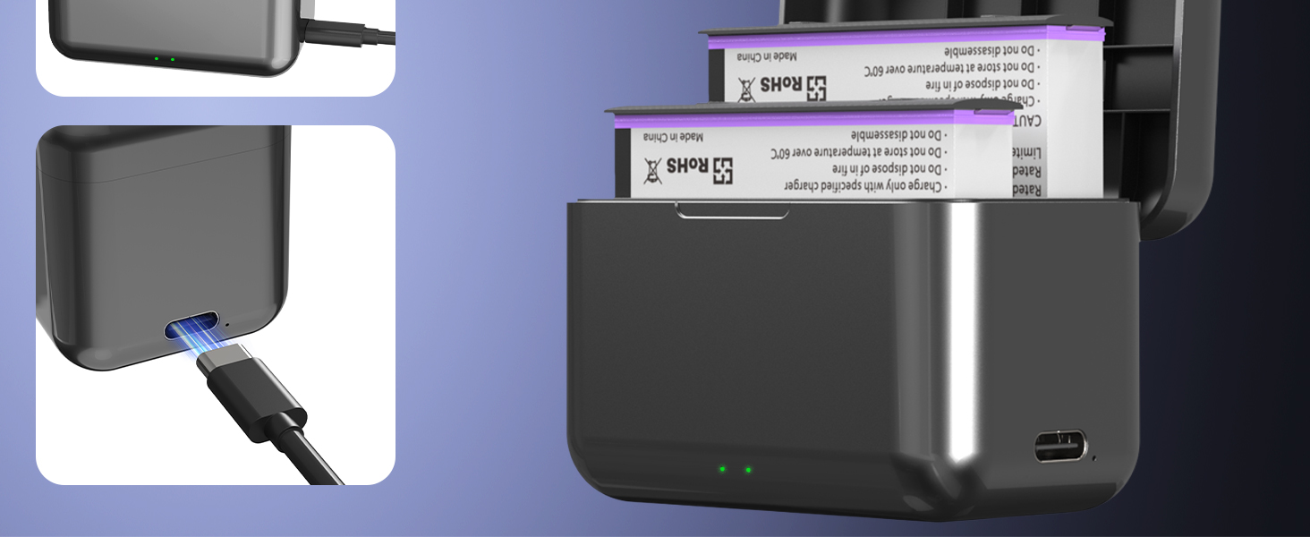 【Multifunctional charging】This charging case has an intelligent charging indicator that allows you to see the charging status at a glance. It can charge two batteries at the same time.