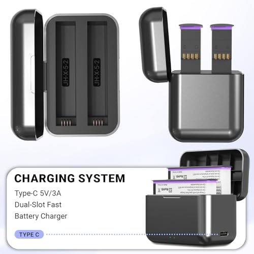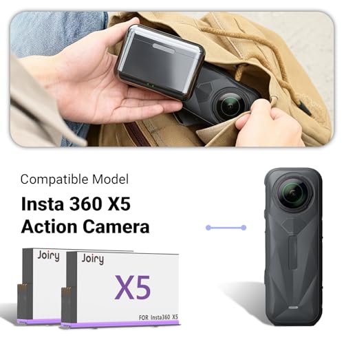 【Versatile design】Joiry Insta 360 X5 camera charger features a magnetic cover design that is convenient and easy to open and provides better protection for your camera and accessories. Camera double port fast charging hub, charging time only 0.5-2 hours. This product weight is lightweight and small enough to fit in your camera bag, perfect for outdoor photography and travel.