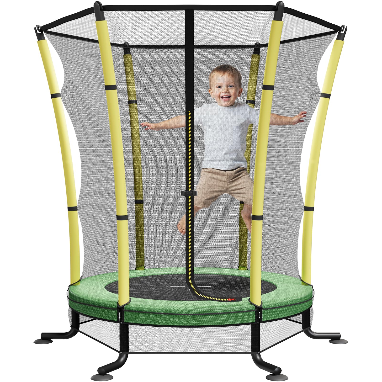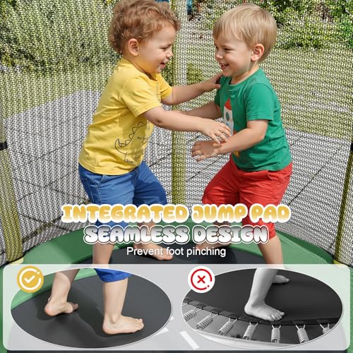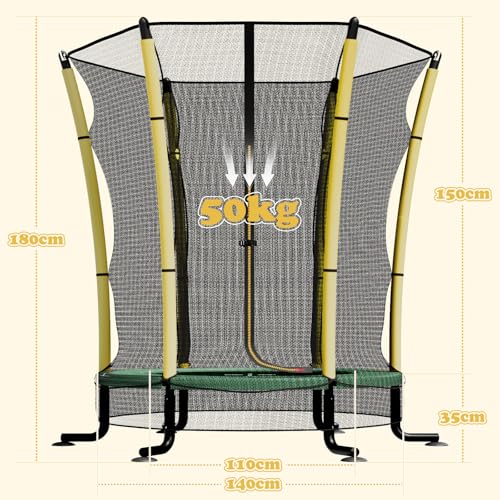 - 【Full 360° Perimeter Safety】Designed specifically as a toddler trampoline, our 180cm high safety enclosure net fully wraps around the frame and seamlessly integrates with the jump mat. This creates a continuous safety barrier that prevents children from accessing the hazardous space beneath the trampoline. Every jump is protected with zero risk of entrapment or impact—because when it comes to children's safety, there is absolutely no compromise.