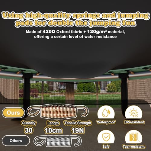 - 【Superior Dynamic Bounce System】Unlike trampolines using elastic bands, our indoor trampoline for children features 30 heavy-duty steel springs engineered to deliver a consistently powerful, dynamic and safe bounce that lasts. Each spring is fatigue-resistant, maintaining optimal elasticity and durability over time. This robust system provides a thrilling high-flying jumping experience, perfect for safely releasing boundless energy indoors while ensuring long-lasting performance.