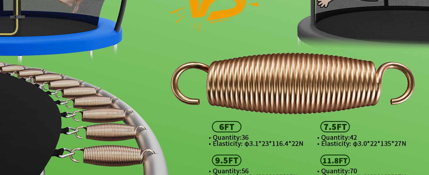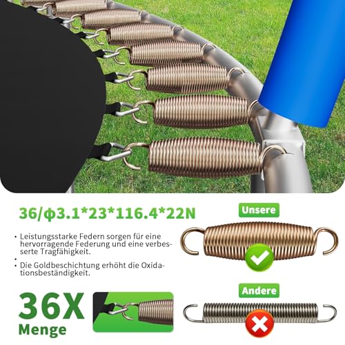 【Powerful & Safe Jump Performance】: 36 high-strength galvanised springs feature specialised rust-resistant coating, outperforming standard springs in durability. Unique non-slip spring hooks ensure smooth, secure bounce response during intense jumping.