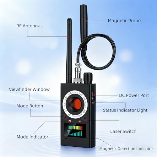 - 4-in-1 Anti-Spy Detector for Your Security – Combines RF signal detection, magnetic field detection, GPS tracker detection and laser scanning in one compact device. Reliably finds hidden cameras, bugs, trackers and other spy equipment
