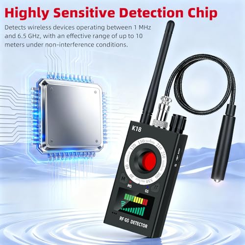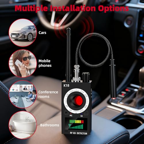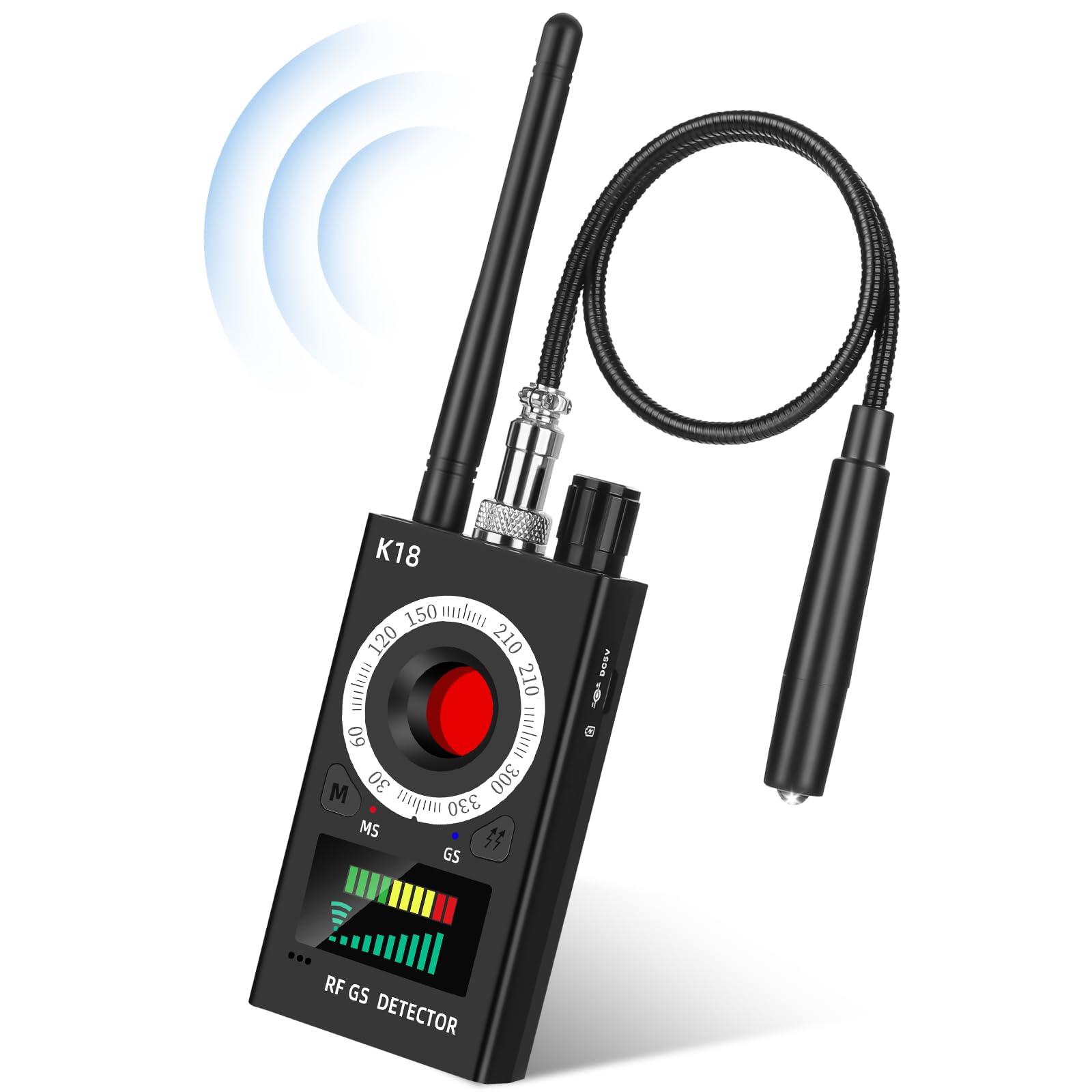 K18 Hidden Camera Detector – RF Signal Scanner for Hidden Devices, GSM Tracker, Listening Bugs & Magnetic GPS Finder, Portable Anti-Surveillance Device for Hotel, Office & Home (Black)