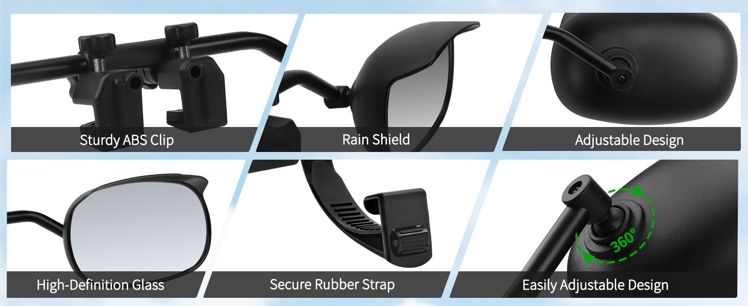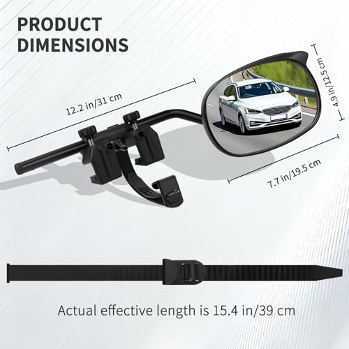 Sturdy Construction: The trailer-specific rear-view mirror extension rod is engineered to deliver a stable and dependable experience. A robust clamp coupled with a non-slip rubber strap featuring a securing hook ensures the mirror remains firmly fixed, eliminating wobble or displacement during transit to provide a consistently clear and steady field of vision