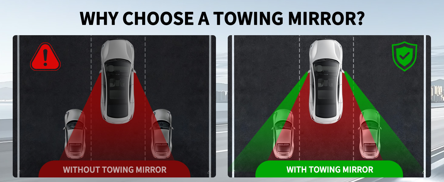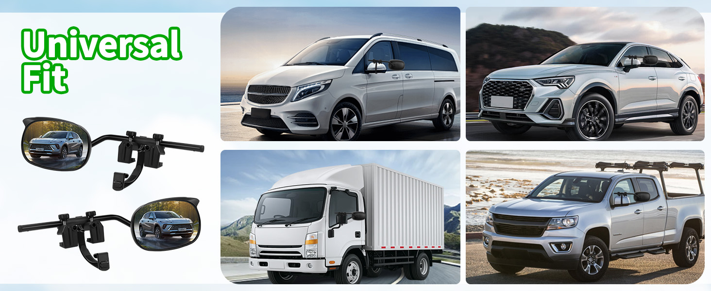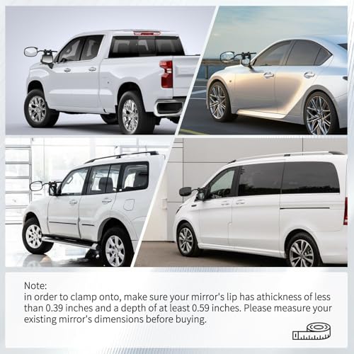 Universal Trailer Mirror: Suitable for various vehicles including trailers, lorries, saloon cars, motorhomes, etc. Provides a wider field of vision for safer and more convenient towing. NOTE: KAOLALI Towing Mirrors are not compatible with rearview mirrors having overly thick/wide top/bottom shell edges, non-adjustable original lenses, or an overly rounded top with no usable flange for installation. Please confirm your vehicle model and mirror features before purchase