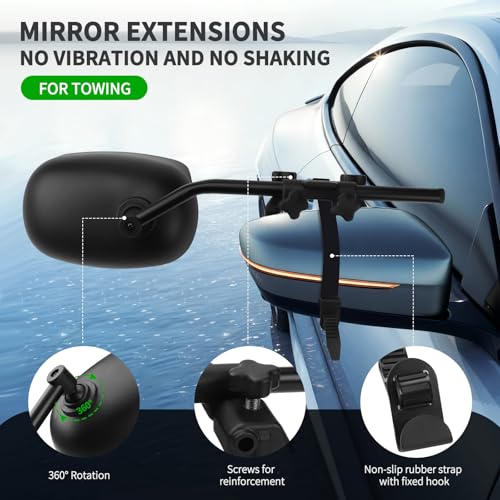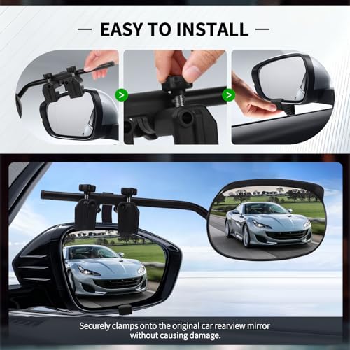 KAOLALI Universal Clip on Towing Mirrors Extensions for Towing, Side Mirror Extenders for Towing with RainProof, Adjustable Rearview Mirror, Tow Mirrors for Car Truck Trailer RV SUV, 2 Pack