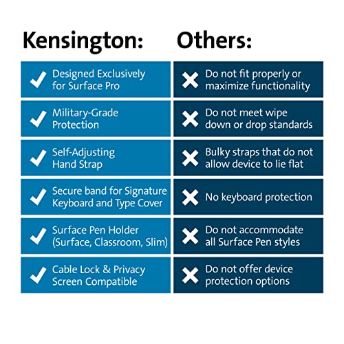 Kensington BlackBelt Rugged Case for Surface Pro 9, Protective Sleeve Case for Microsoft Tablet, Water Resistant & Drop-Tested Laptop Case for Surface Pro with Hand Strap (K96540WW)