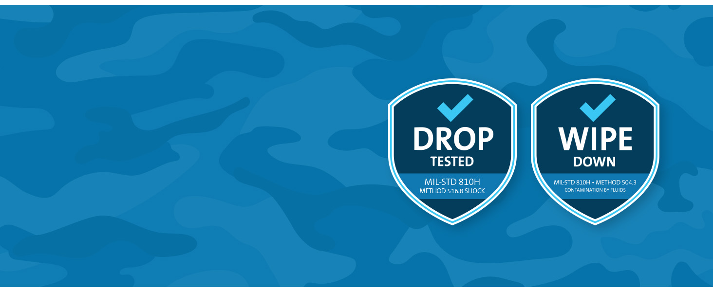 [Military-Grade Protection] Ready for anything, this case meets wipe down (MIL-STD-810H Method 504.3 Contamination by Fluids) and drop testing (MIL-STD-810H Method 516.8 Shock) standards