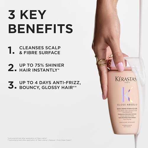 Kérastase Gloss Absolu Bain Crème Hydra-Glaze, Shampoo for Shiny, Thick and Curly Hair, Anti-Frizz Hair Care with Hyaluronic Acid and Glycolic Acid, Volume and Moisture Shampoo, Sulphate-Free, 250 ml