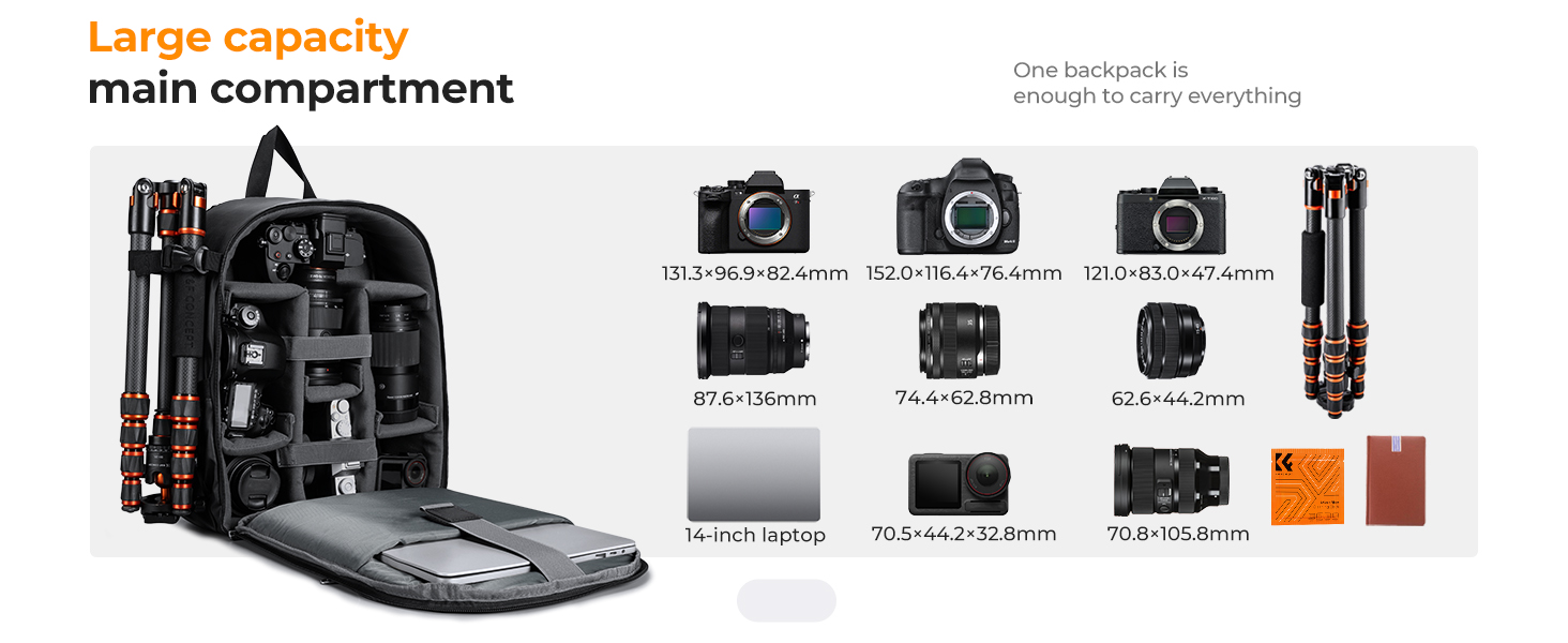 K&F CONCEPT Camera Backpacks for Photographers Travel Bag for Tripod Camera Lence Accessory with laptop compartment and Rain Cover Waterproof