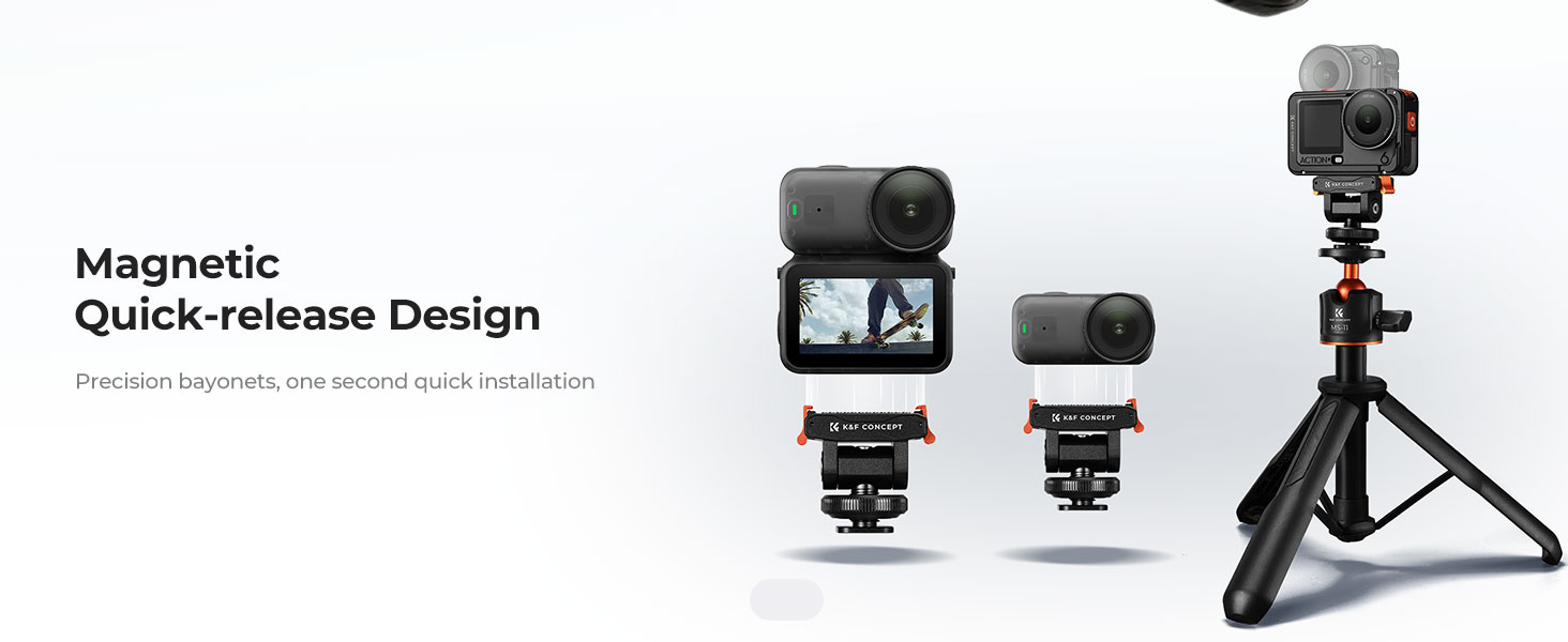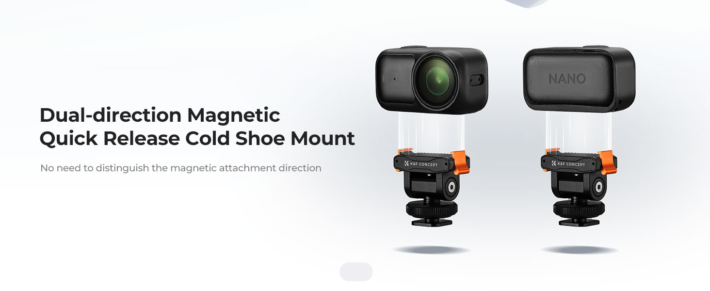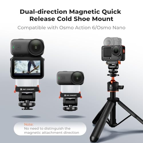K&F CONCEPT Magnetic Cold Shoe Mount for DJI Osmo Nano/Action 6, Quick Release Base with Cold Shoe 1/4″ Thread, 180° Tilt Adjustable Adapte