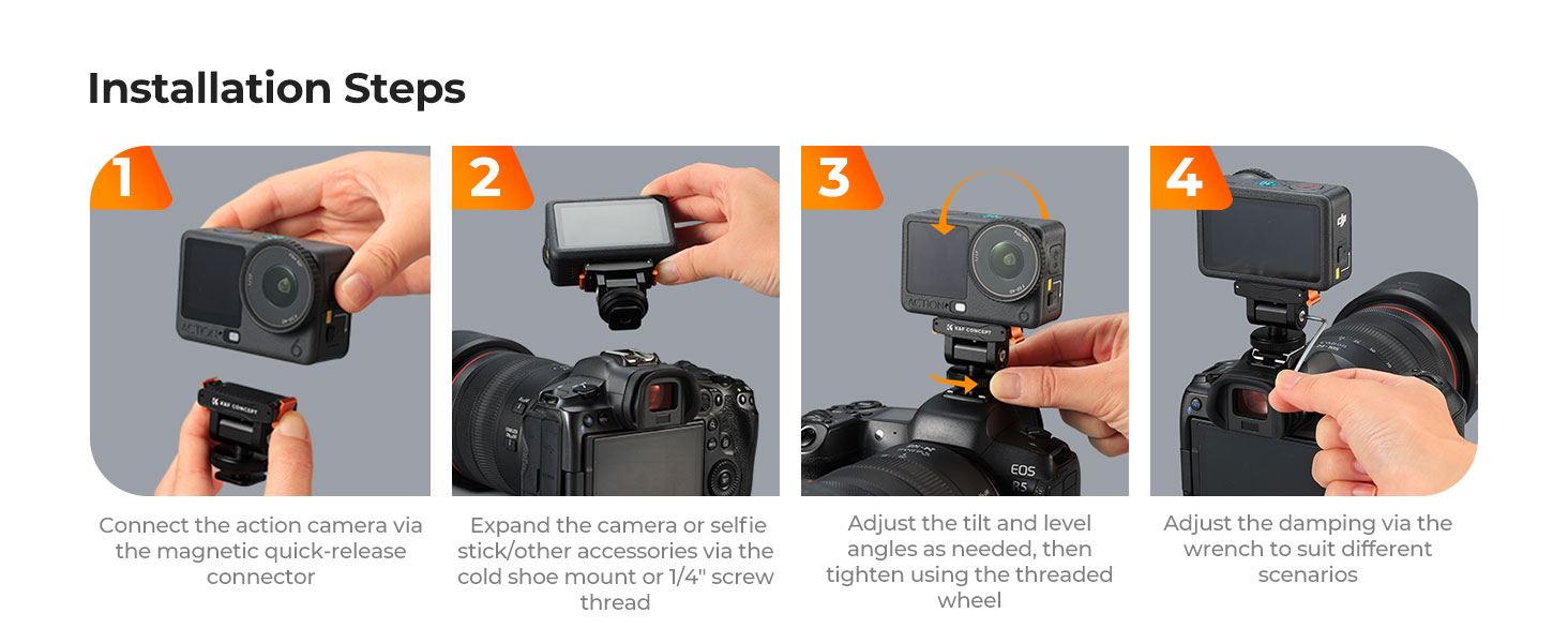 - Compatible with DJI Osmo Nano/Osmo Action 6: This dual-direction magnetic quick-release mount is precisely adapts to Osmo Action6/Nano, it's designed for dual-camera shooting scenarios, ensuring flexible use with various cameras for capture wonderful moments from two angles at the same time, it's a game changer for vloggers, photographers, and content creators